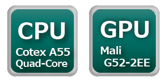 CPUはRK3566 Cortex-A55 Quad-Core、GPU(グラフィックプロセッサー)にはMali-G52-2EEを搭載していますので、より快適にコンテンツ表示させることが可能です。
