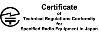 総務省令に定められた「技術基準適合証明」の認証を得た「技適マーク」付与認定済みです。