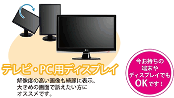 今やほとんどのAV機器に標準されている一般的な接続端子であるHDMIでお手持ちの液晶モニターやTVなどの表示機器に接続し、デジタルサイネージのプレイヤーとしてお使いいただけます。